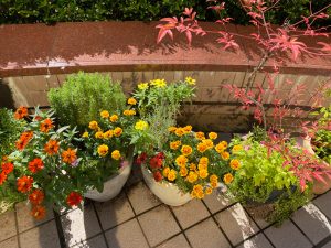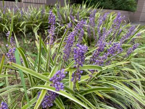 また、中庭には、小さな紫色の花が連なって咲いているヤブランも。