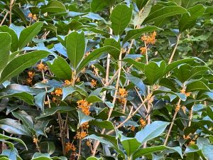 キンモクセイは、開花期間が約1週間と短いですが、春のジンチョウゲ(沈丁花)、夏のクチナシ(梔子)とともに、三大香木と呼ばれています。