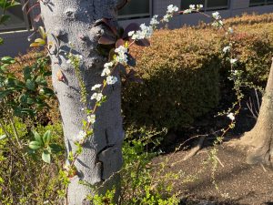 会館東側の庭に咲くユキヤナギ(雪柳)が、春の訪れを感じさせます。