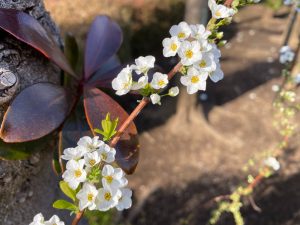 雪のように白い花びらと黄色い雄しべが小さな妖精のよう。冠のように連なる姿も愛らしいです。