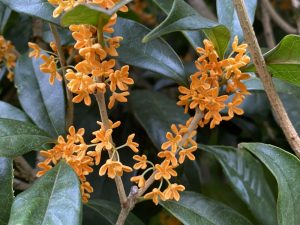 キンモクセイのオレンジ色の花もハロウィンの装いです。
