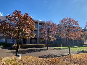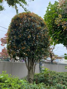 秋の深まりとともに、正門や南門だけでなく東西棟の庭のキンモクセイが満開となりました。