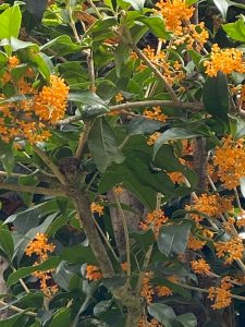 キンモクセイのオレンジ色の花もハロウィンの装いです。