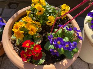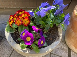 冬から春先まで咲くパンジー、ビオラ、ジュリアンも中庭の景色に彩りを添えてくれます。