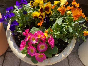 冬から春先まで咲くパンジー、ビオラ、ジュリアンも中庭の景色に彩りを添えてくれます。